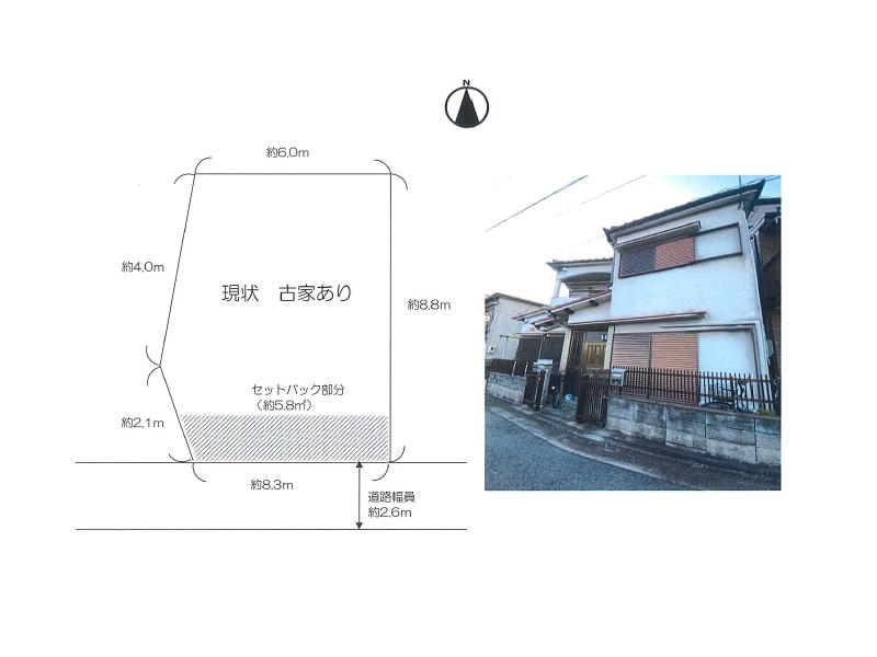 | 接道 | 南 2.7m(幅員) 公道 8.2m(接面) | セットバック | 有 面積4.5m²(1.37坪) |